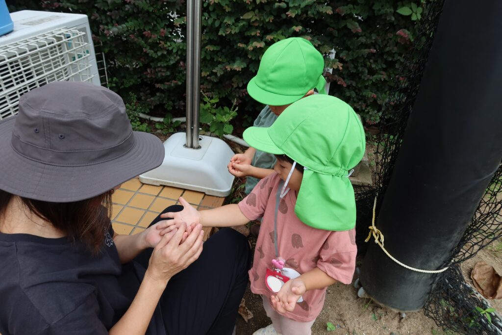 過ごしやすい1日でした。園庭では、子どもたちの元気な声が響いていました。好きな固定遊具や砂場、鬼ごっこ~体を沢山動かしてみんなパワーアップ⤴