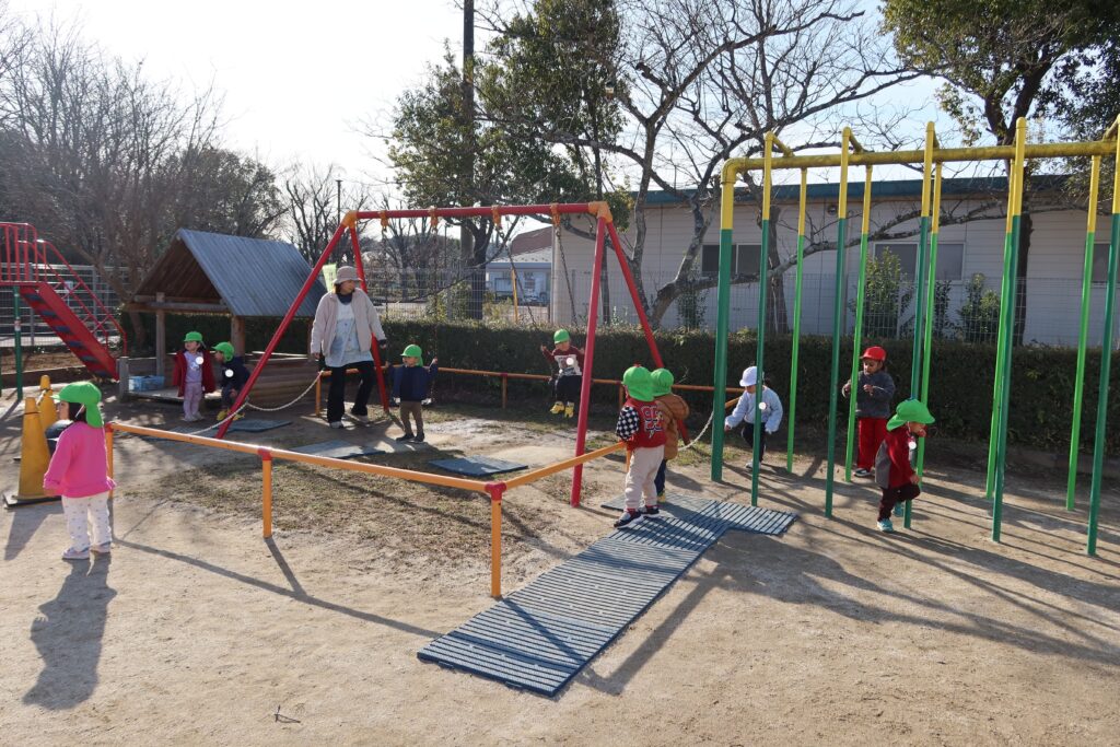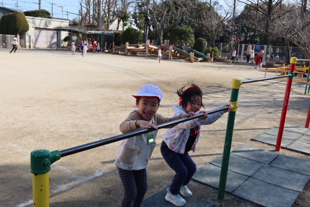 カテゴリー 園の様子 自由遊び 投稿者 作成者: mizukinodirector 投稿日 2026年1月15日 固定投稿 本日も、太陽の日差しが有難いです。年中組のお友だちは、鉄棒で逆上がり・前回りを嬉しそうに遊んでいます。二人ともいい笑顔です~ 朝の支度を済ませて、園庭では、元気に体を動かしています。 くま1組さんが「だるまさんがころんだ~」を賑やかに遊んでいると・・・黄緑帽子の満3歳児クラスのお友だち(2人)も、ちょこんと、女の子の隣にくっついて、仲間入り!かわいい♡ブランコも人気で、かわりばんこ。また明日、遊ぼうね!! ← 避難訓練