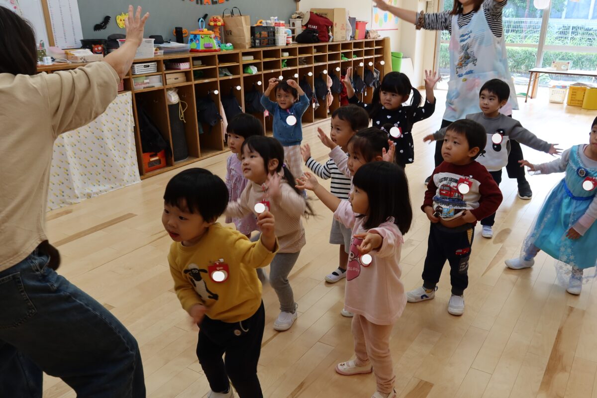 クラスや学年で毎日の活動(1日の流れ)に見通しを持って、過ごしています。満3歳児クラスは、ハロウィンダンスがお気に入りです。一つひとつの動きが可愛いです。