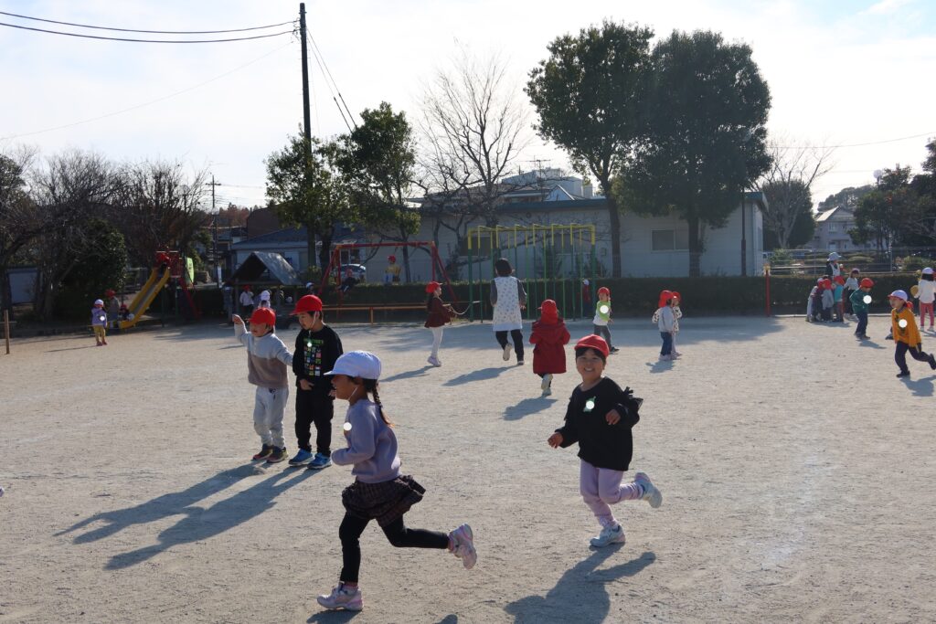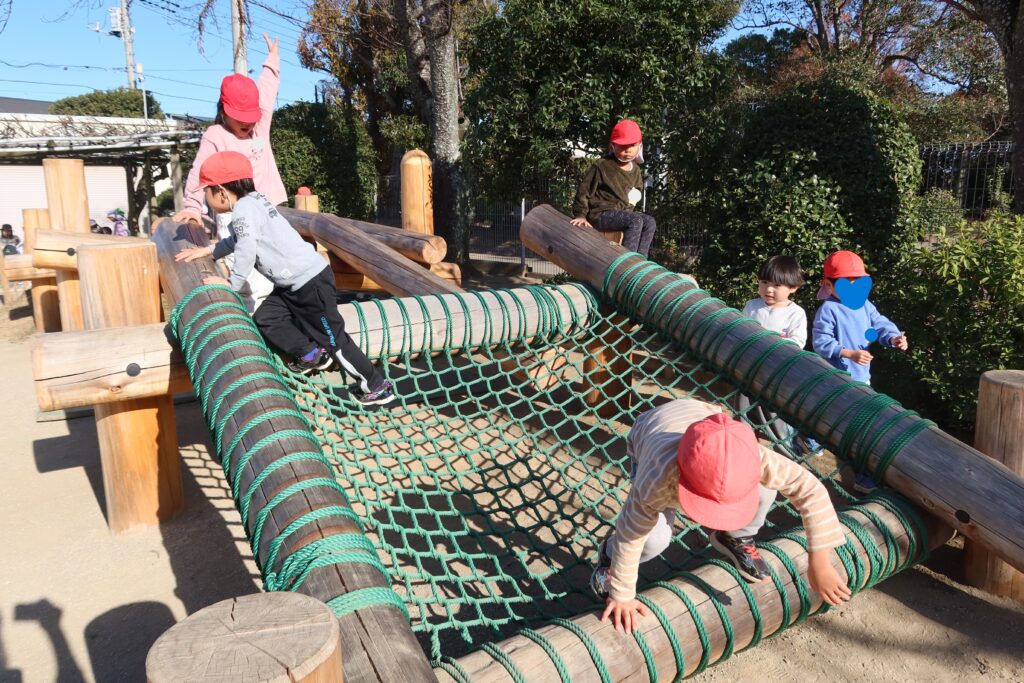 午後の自由遊びは、園庭が子どもたちがのびのびと体を動かし、元気いっぱいです。年長児は、ブランコで勢いよく漕いでいましたが、青空の下で風を切り、気持ちがすっきり!!楽しいよ~といい笑顔でした。