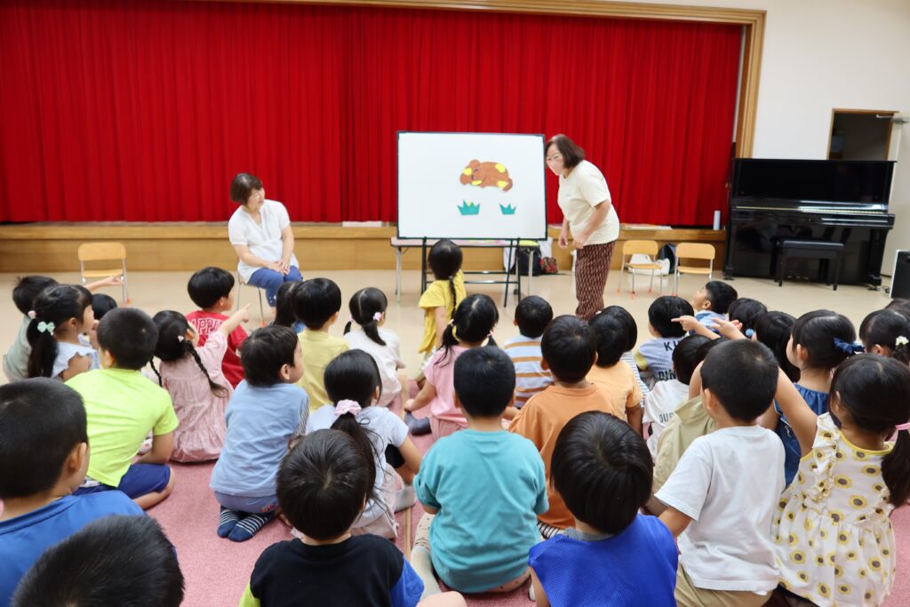 2部制で、それぞれの大型絵本やペープサートやパネルシアターなど色々みせてくれました。子どもたちは、しゃぼんだまさんのあたたかさを感じながら楽しいひとときを過ごしていました。みんな大笑いしたり、元気に答えたり、静かに聞く場面など様々な姿がみられました。