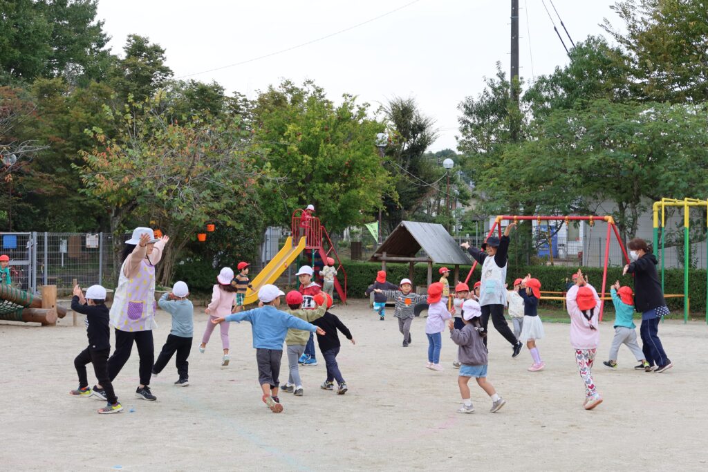 朝晩は、肌寒くなりましたね。まだまだ、日中は、日差しが強く感じましたが、爽やかな風と太陽の力を浴びながら、園庭では外遊びを思い切り楽しんでいました~