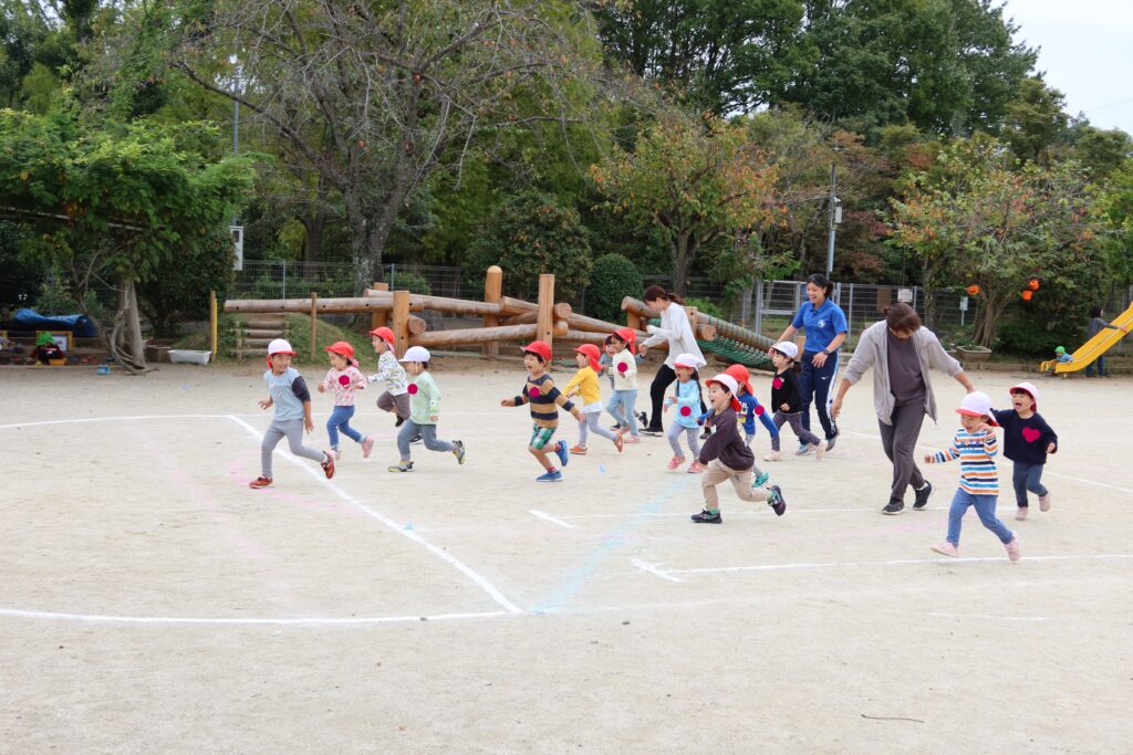 園庭の柿の木は、真っ赤に実り、友だち同士で、下から眺めて「美味しそうだね」「柿、好きだな~」会話が聞こえてきました。運動会が終わって、心も体もますます成長を感じています。