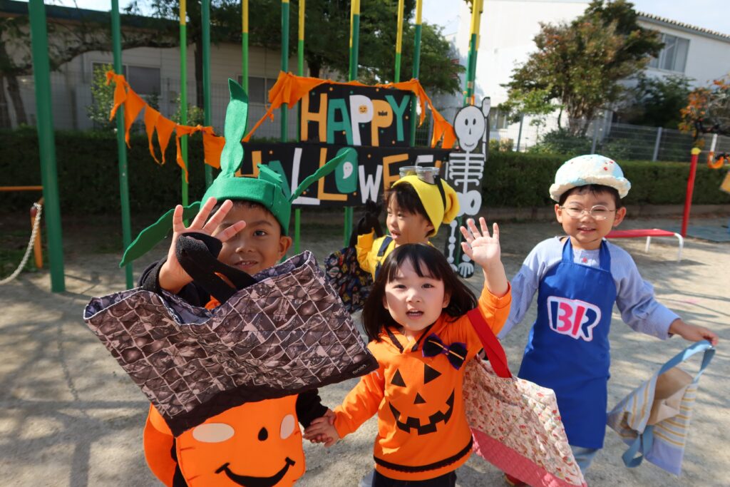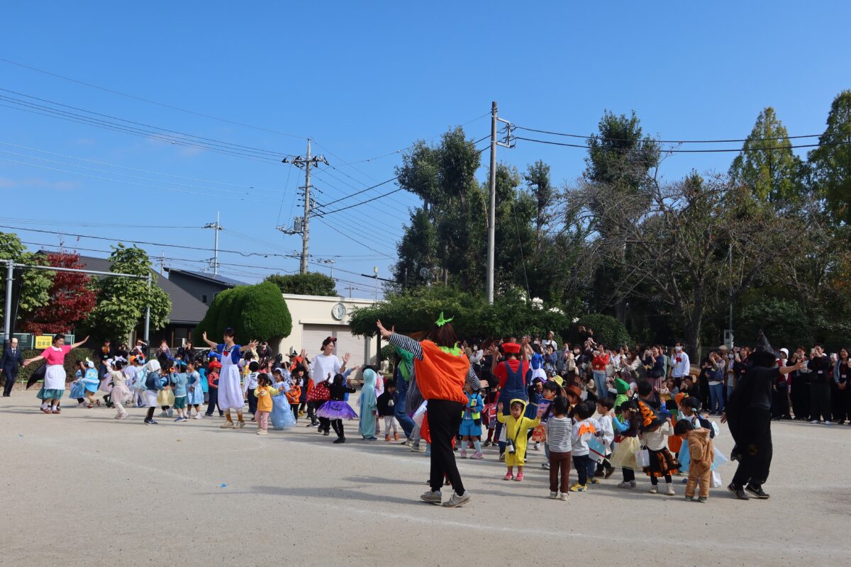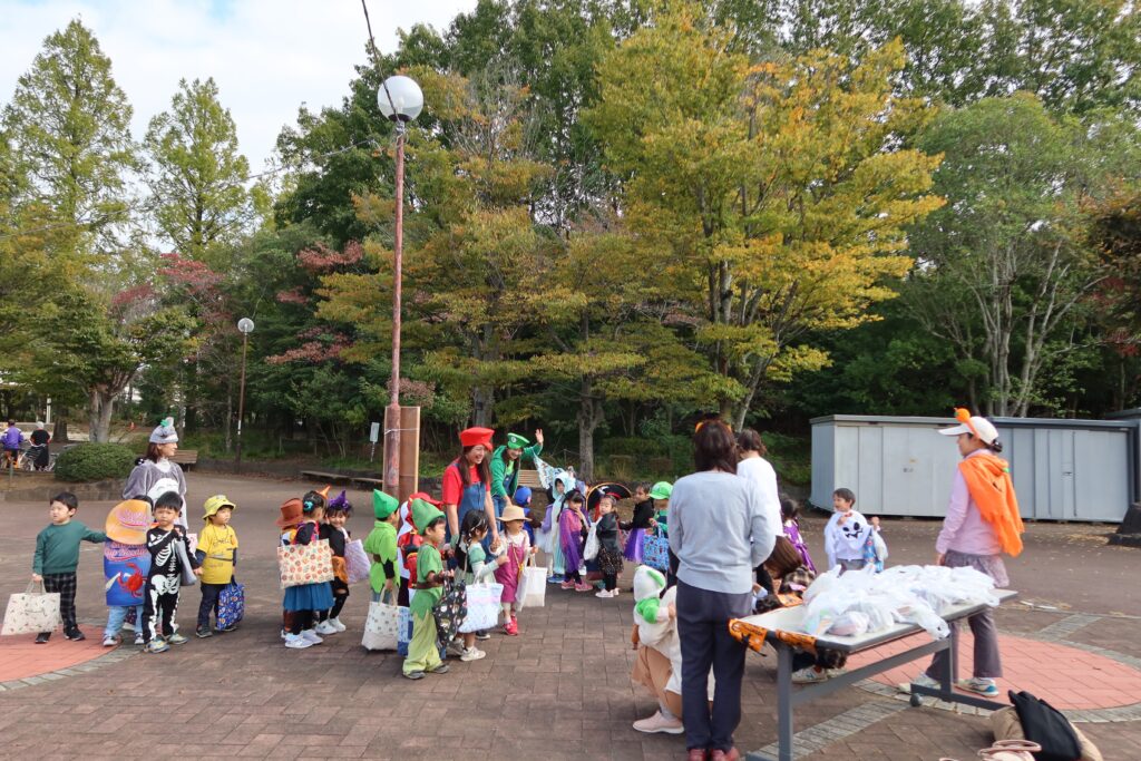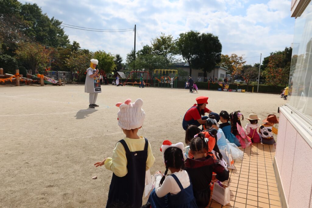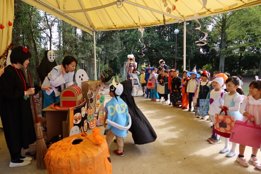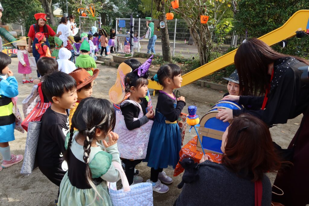 青空の下で風も心地よい日に、ハロウィンパーティ🎃を行うことが出来ました。お気に入りのダンスをみんなで元気いっぱい踊ってから、いよいよパレードへ~園庭と近所の公園には、お母様方が素敵にディスプレーして下さり子どもたちは、テンションもアップ!!少し歩いていくと・・・👻町内会の皆様からもお菓子を頂いて大喜びの子どもたち。元気な声で合言葉を言ったり、心も、お腹も?笑顔が いっぱいなひとときでした~ありがとうございました。