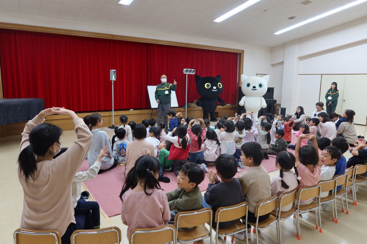 クロネコさん・シロネコさんが登場すると、みんな可愛い~!!と大喜びで出迎えてました。最後は、EV宅配車の見学をしました。交通ルール、守ろうね。今日は、ありがとニャン!!