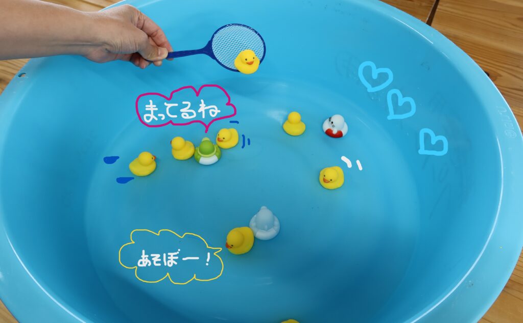 来週29日月曜日は、アヒルさんをタライに浮かべて・・・・「アヒルすくい!!」します。さて、何匹釣れるかな・・・・ひよこクラブの皆さん、楽しみにお待ちしています。