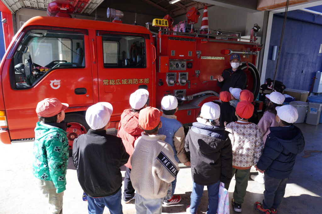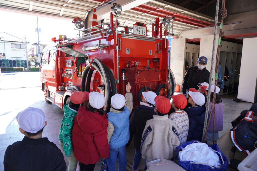 カテゴリー 保育 消防署見学(年長組) 投稿者 作成者: mizukino 投稿日 2026年1月23日 固定投稿 みずき野町内にある「南守谷出張所」へ歩いて行ってきました。 今回は消防車と救急車の他に消防士さんが仮眠を取る場所や食堂等の署内の見学もさせていただけました。子ども達が分かりやすい例でお話をしてくれたり、消防車についている装備の説明、子ども達からの質問にも沢山答えていただきました。見学中、救急車に出動指令が入り、出動する様子を目の前で見ることができました。 南守谷出張所の方々、お忙しい中見学の受け入れをありがとうございました。 タグ 年長組 ← うっすらと・・・ → 元気いっぱい